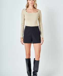 BLACK, TAUPE: Height 5’10” / Bust 33″ / Waist 25.5″ / Hips 35″