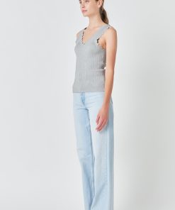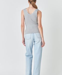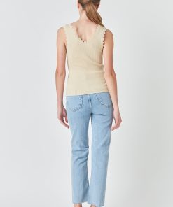 Our Scallop Detail Sleeveless Top is perfect for looking fabulous in the warm summer months. The top features a flattering front and back V-neckline for a feminine look. The fitted bodice and scallop detail down the sides of the top add a unique flair. With its sleeveless feature it’s lightweight and breezy – perfect for even the hottest days. Get ready for the summer in this stylish Scallop Detail Sleeveless Top! Featuring a fitted bodice scallop details and V-neckline you’re sure to feel your best while staying cool