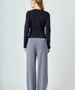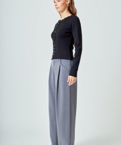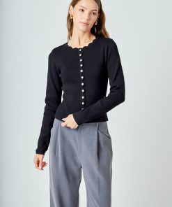 Introducing our must-have Scalloped Accent Split Long Cardigan, perfect for the cooler months ahead. Made with a cozy knit material, this cardigan features a feminine scalloped neckline and long sleeves for added warmth. The center front buttons add a classic touch, making it a versatile piece for any occasion. Stay stylish and stay warm in this must-have cardigan. Perfect for layering and elevating any outfit, grab yours now!