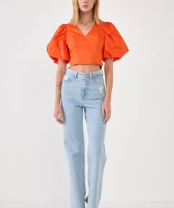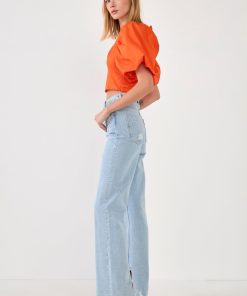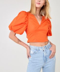 This top is the perfect way to add some brightness to your wardrobe. The orange color is trending right now, and the puff sleeves add a touch of cute whimsy. Plus, it’s made of 100% cotton, so it’s comfortable to wear all day long.