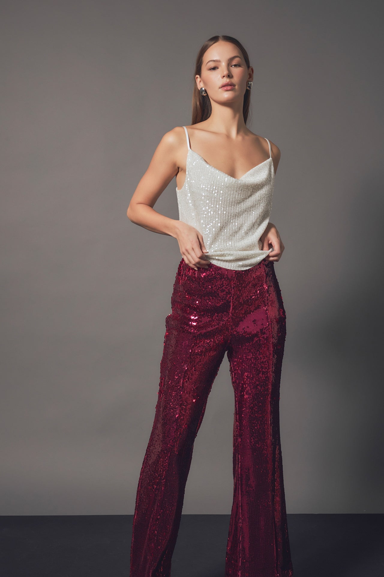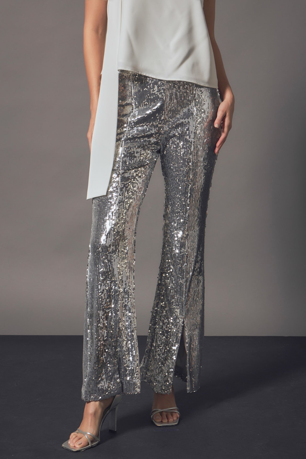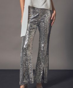 Our Sequin Flare Pants are so much fun, you’ll never want to take them off! These sequin pants stand out from others because they feature a mini flare with a front slit. Throw on these pants for any special occasion, just be ready for all of the compliments you’re going to get!