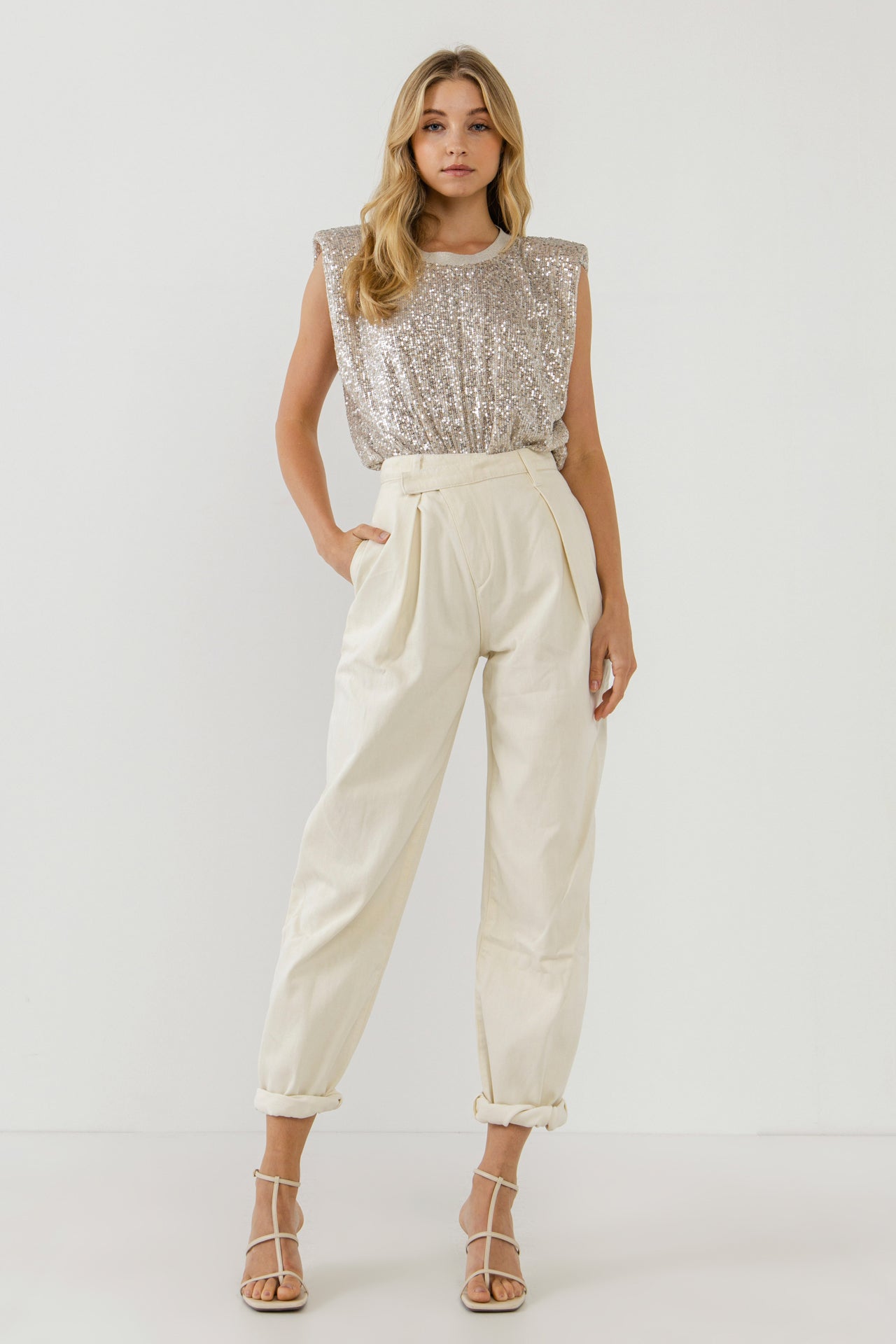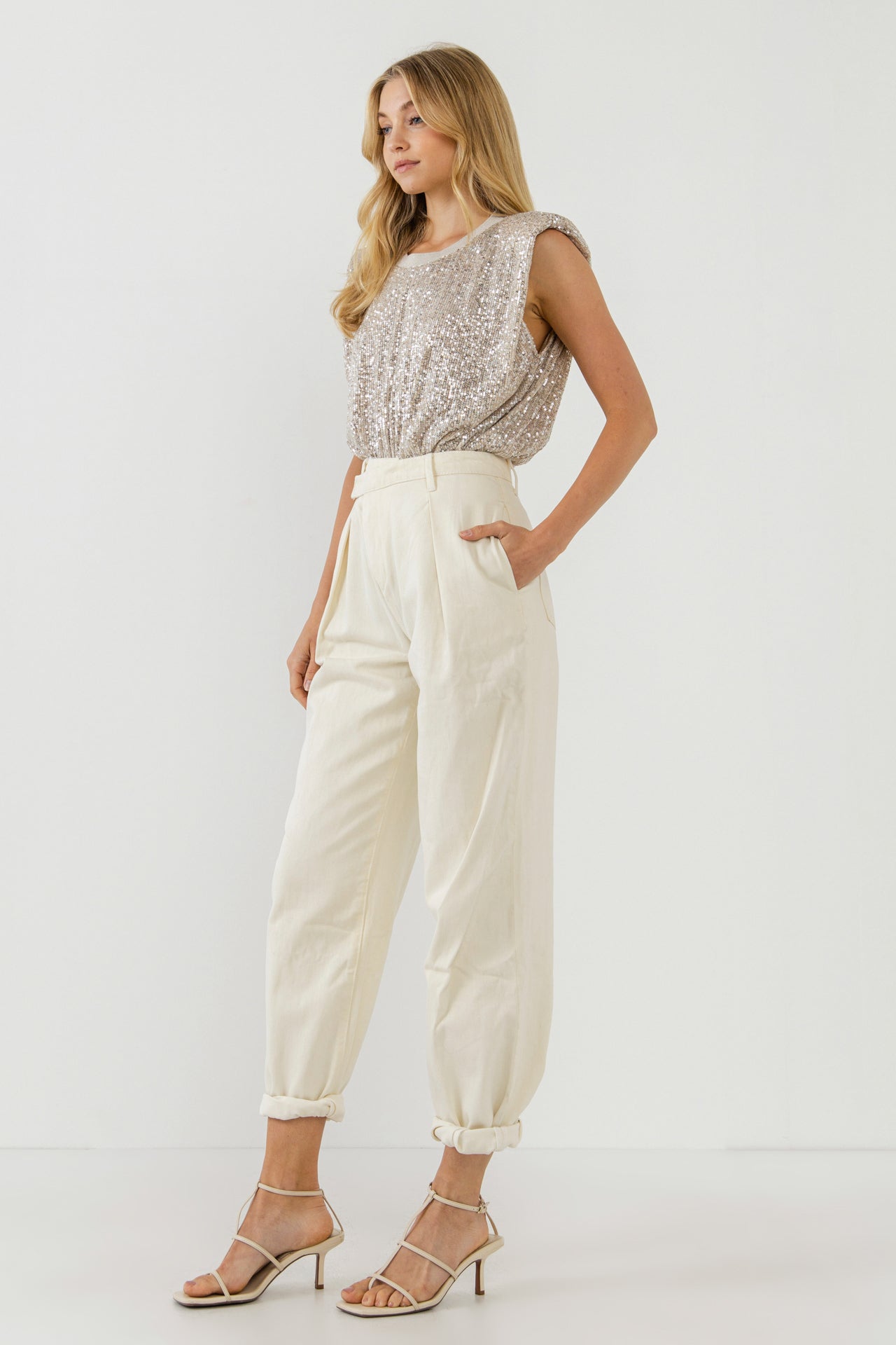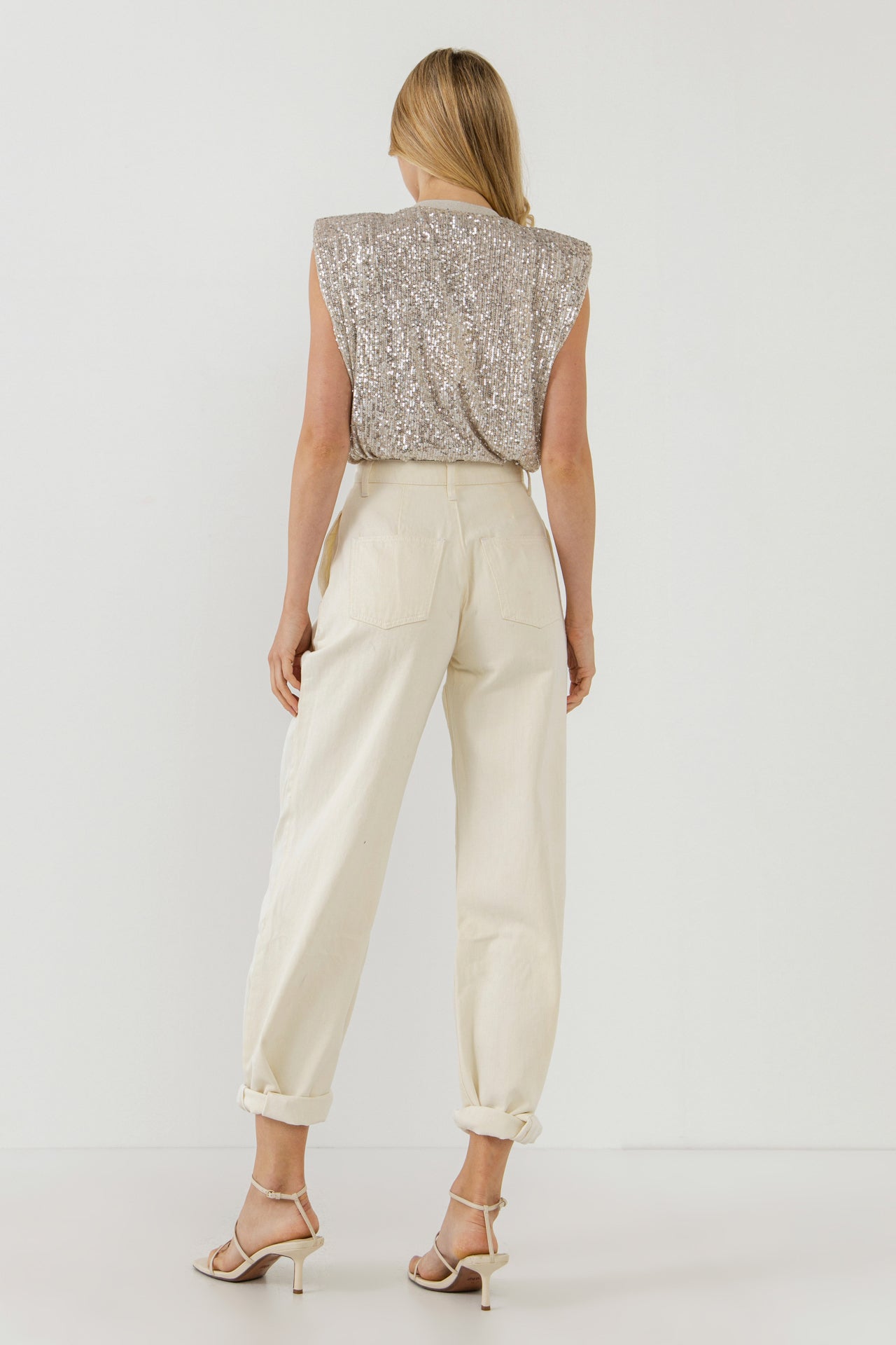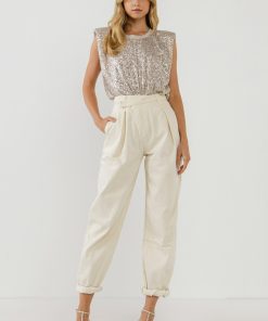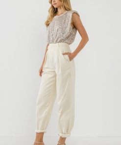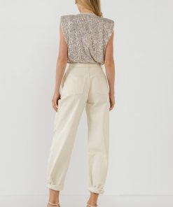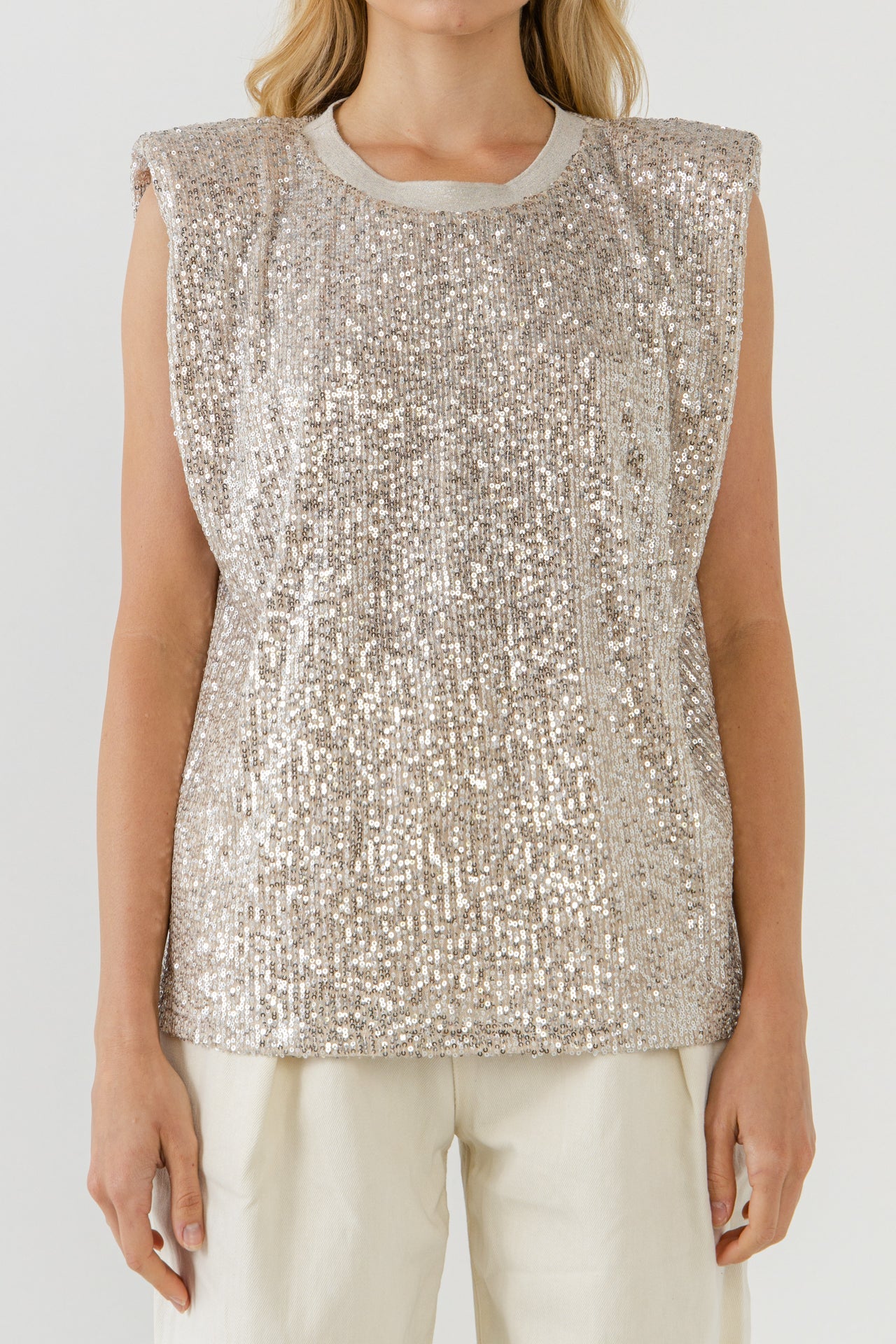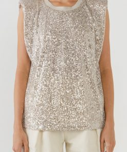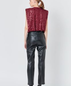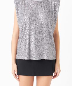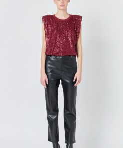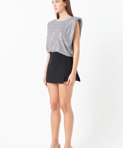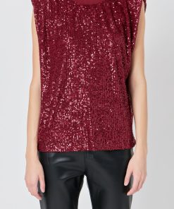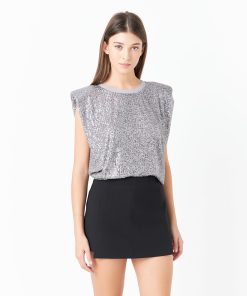 Endless Rose Women’s Sequin Shoulder Pad Top | Black|fuchsia|silver|ivory|bordeaux
