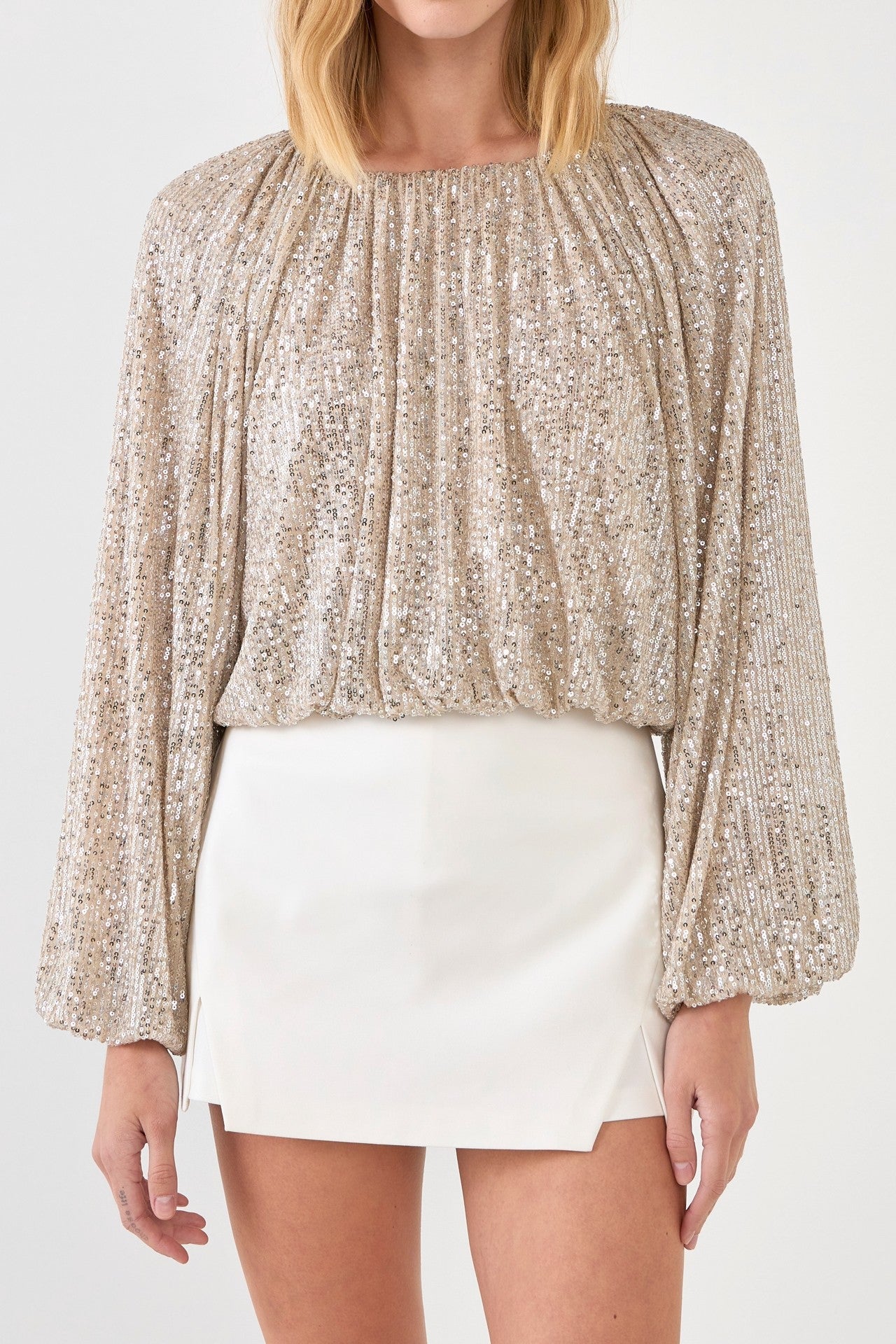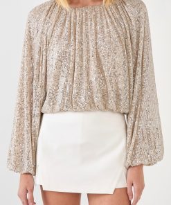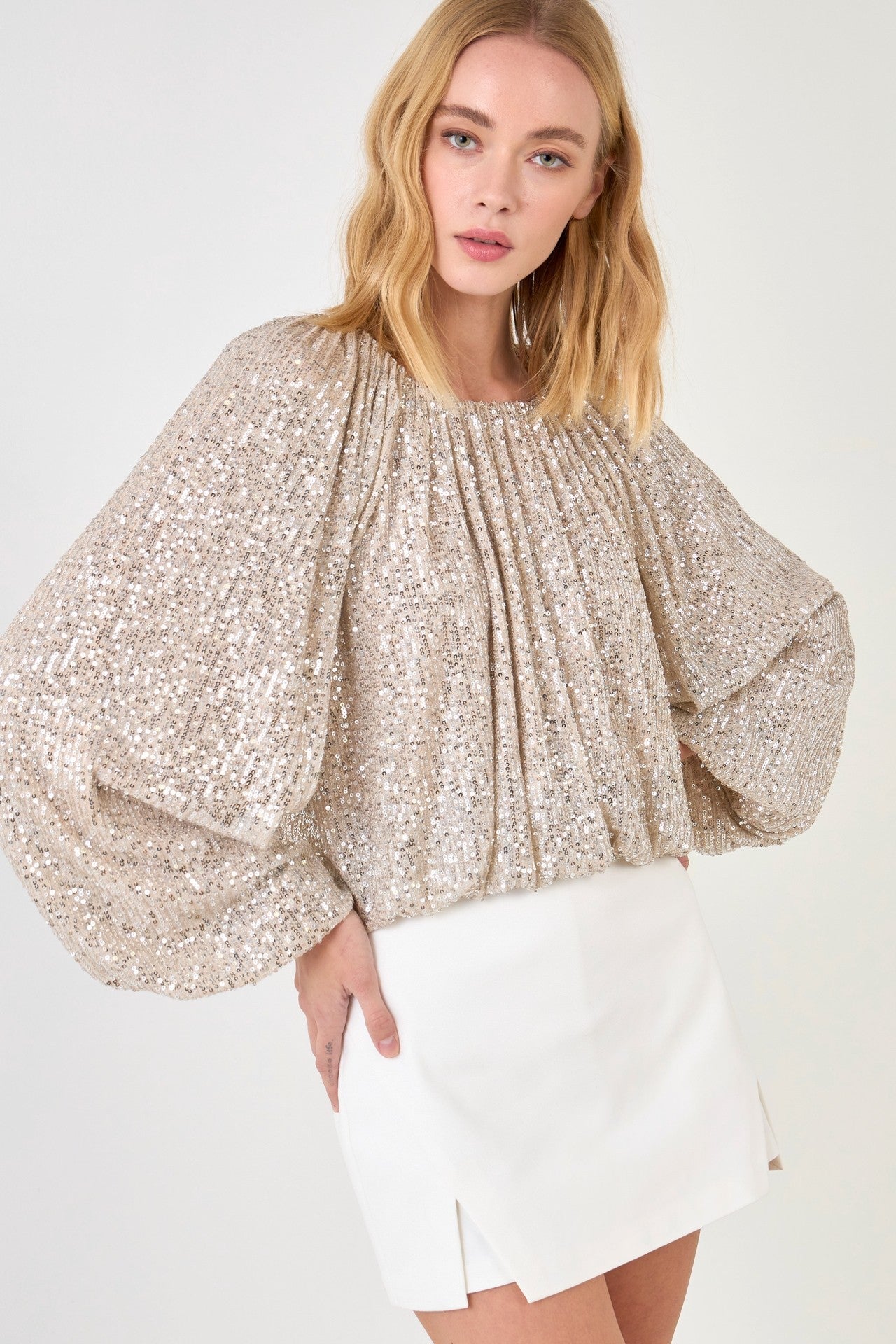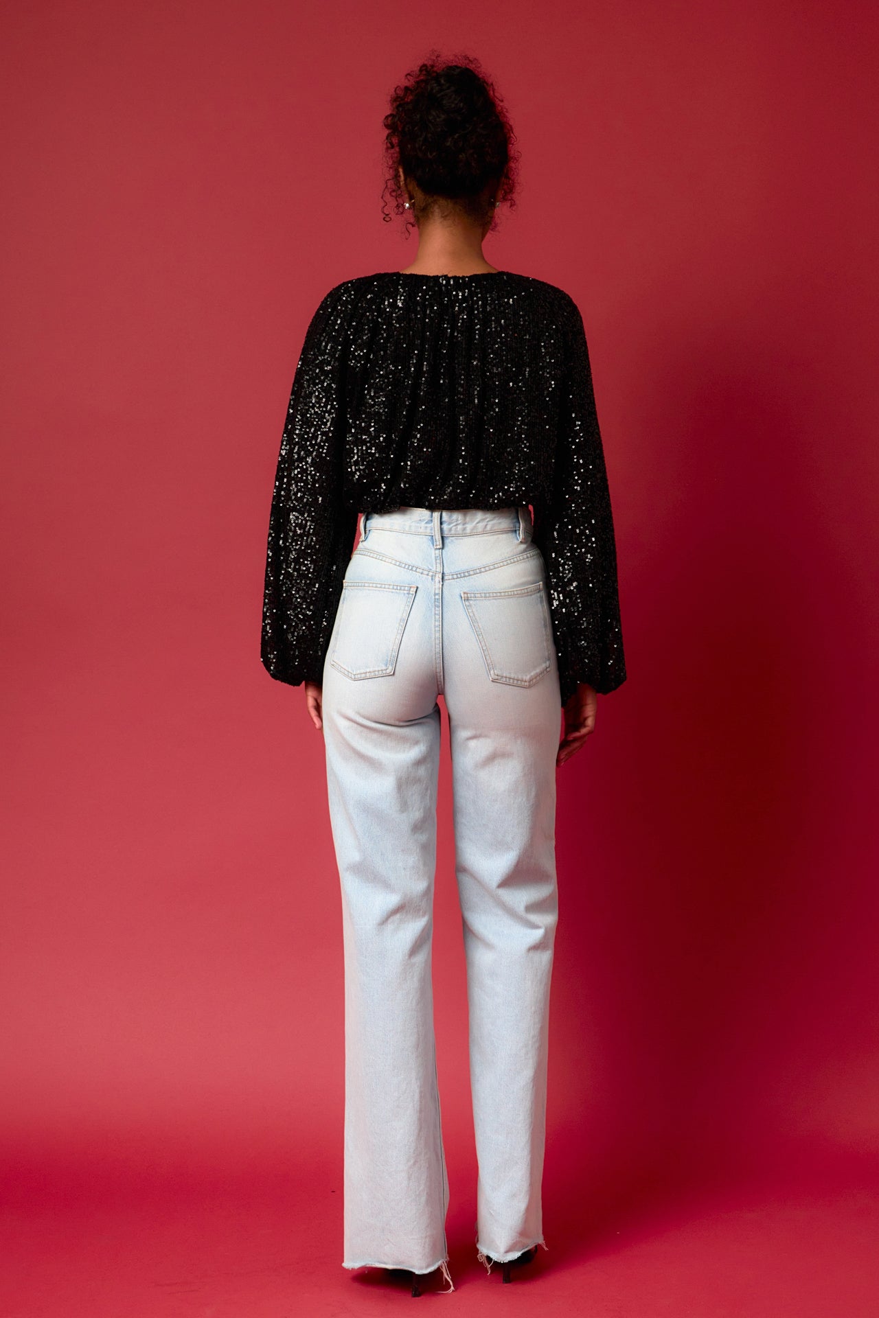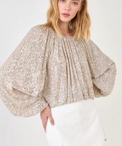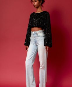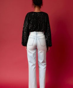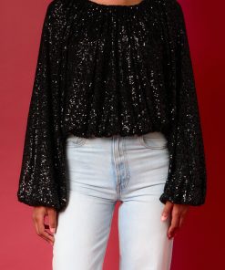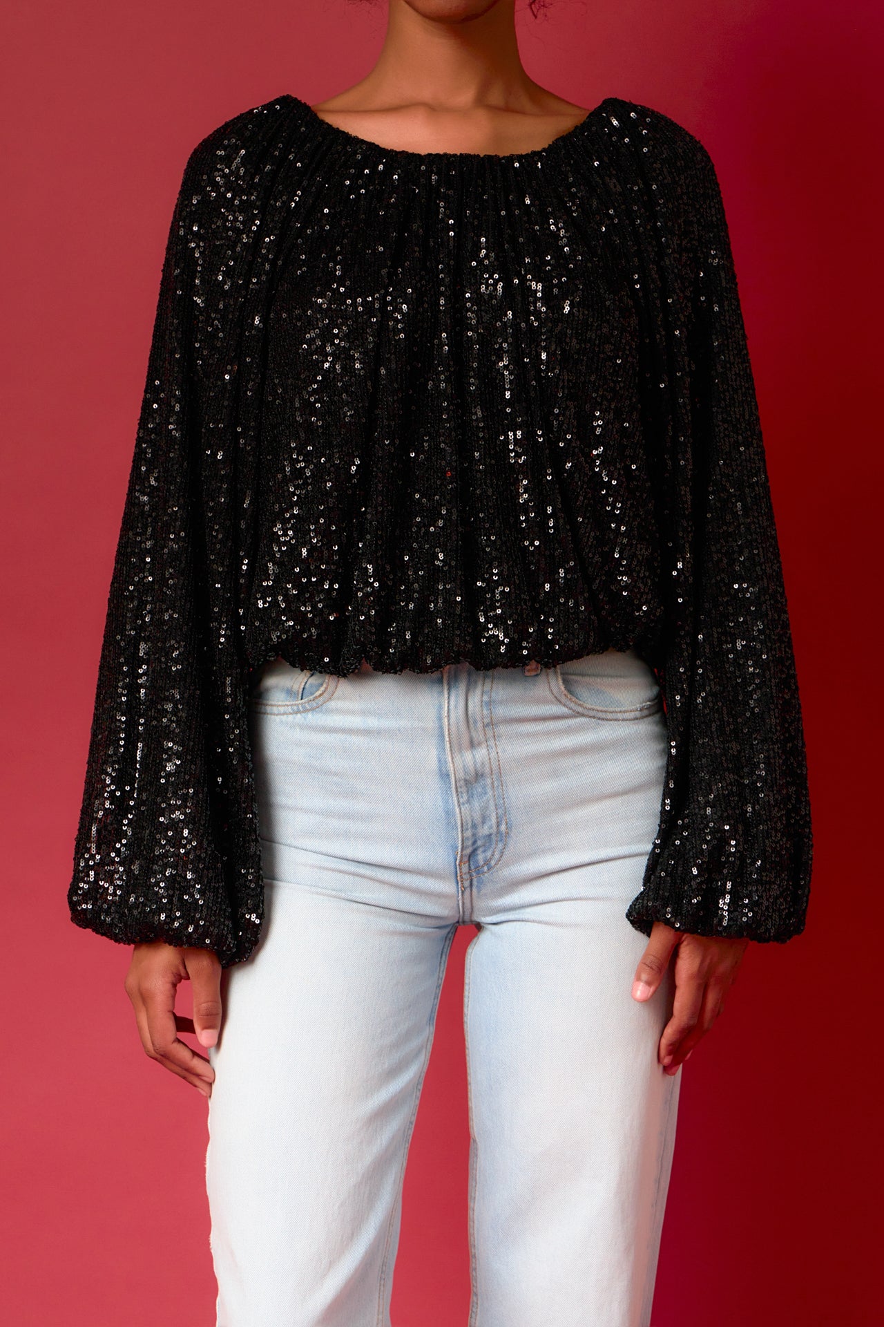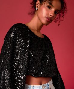The blouson top is a classic style that is always in fashion. With a flattering cropped bodice and a lightweight feel, this blouse is sure to become your go-to top. The sequins add a touch of sparkle and shine. Pair this top with a denim skirt for a fun, casual look, or dress it up with some black trousers and heels for a night out.