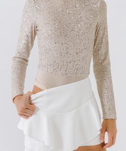 Shine bright in our Sequins Bodysuit. Made from a beautiful sequin fabric this top features a round neckline a bodysuit design and long sleeves that will turn heads when you walk into the room. It’s the perfect way to glam up any outfit. Our Sequins Bodysuit is sure to take your wardrobe up to the next level. Make a statement and be the envy of all your friends.