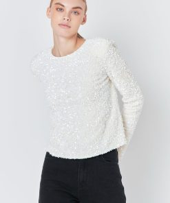 Shine bright like a diamond in our Sequins Long Sleeve Top! This must-have top features dazzling sequins that catch the light with every move. The long sleeves provide warmth and style, while the round neckline adds a classic touch. Complete the look with the back keyhole detail, adding a touch of elegance to your ensemble. Whether it’s a night out or a special occasion, this top is sure to turn heads. Upgrade your wardrobe with this statement piece that perfectly captures the latest trends. Shop now and be the shining star of any event!