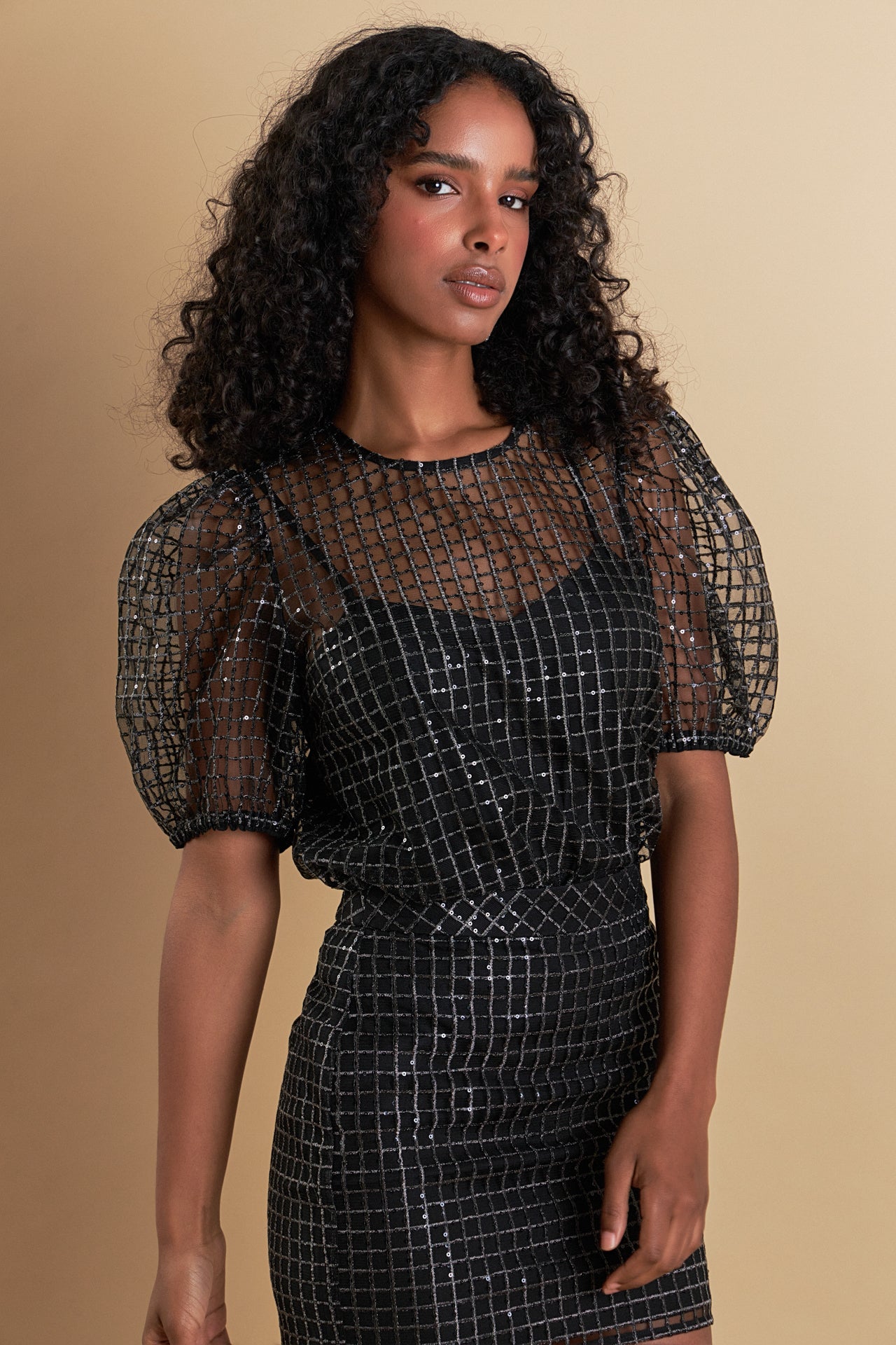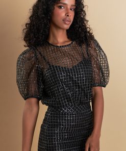 Endless Rose Women’s Sequins Mesh Grid Top | Black
