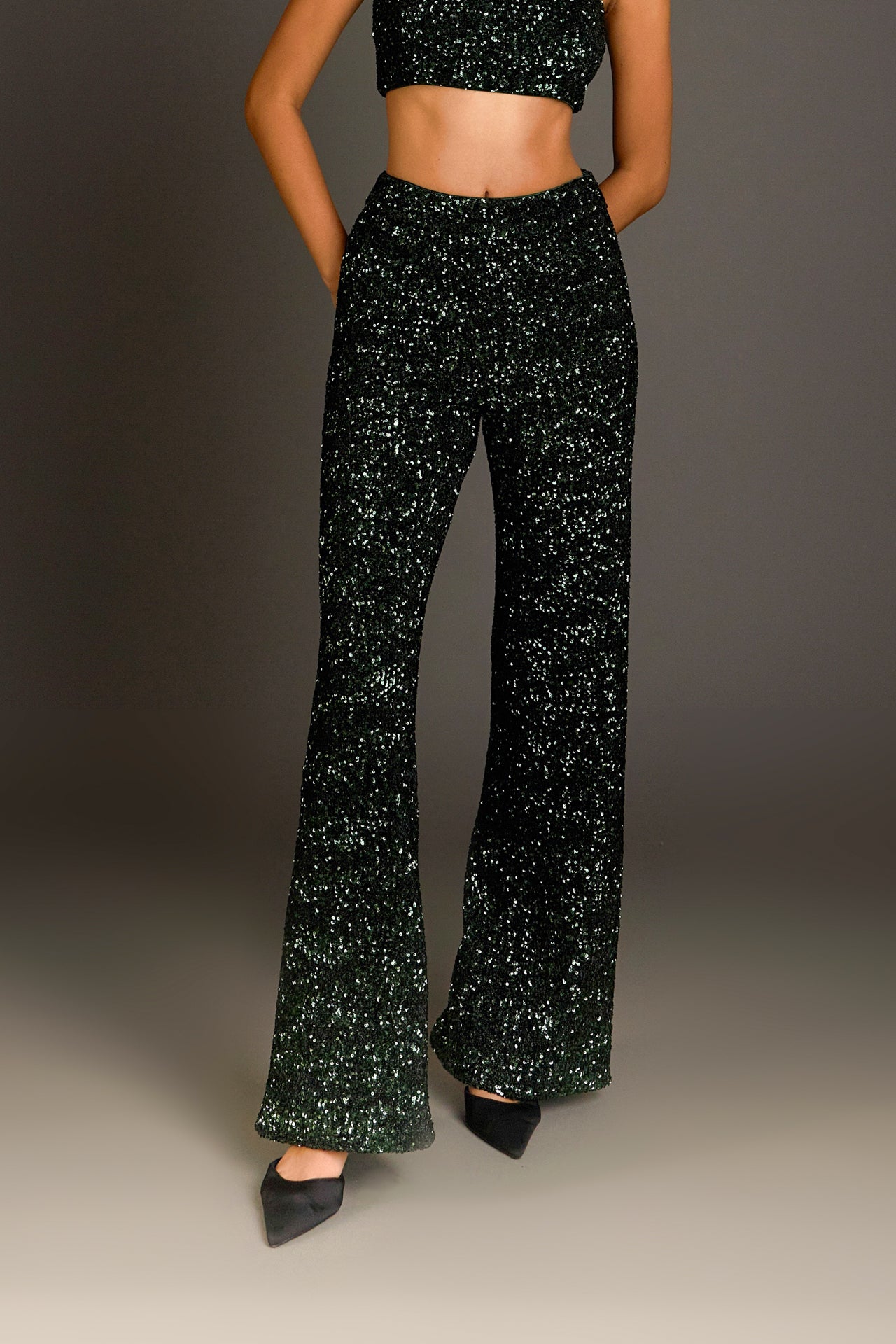 Endless Rose Women’s Sequins Wide Leg Pants | Emerald