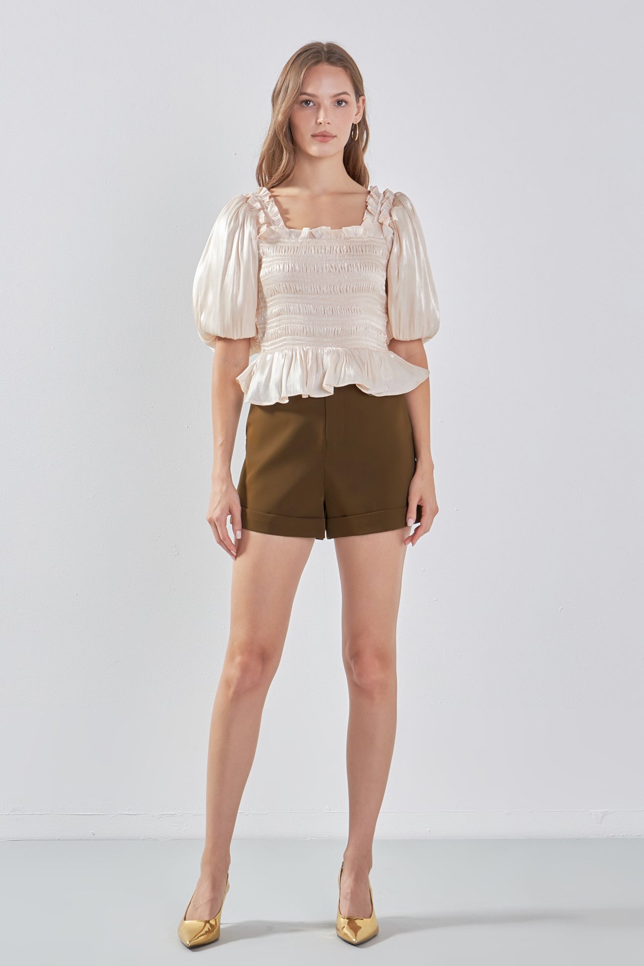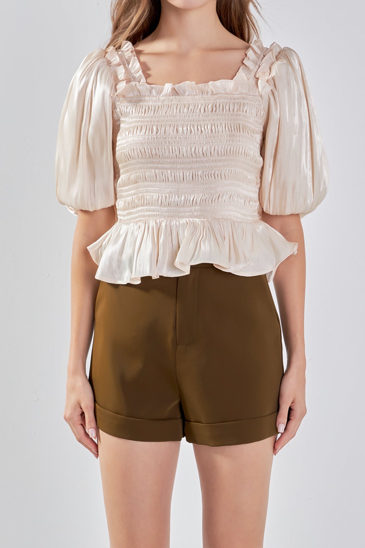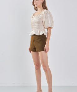 Feminine and timeless, this smocked top from endless rose will become a go-to in your wardrobe. With its fitted silhouette, square neckline, blouson short sleeves and elastic ruffled shoulders, it’s designed to flatter. The smocking adds texture and depth to the piece while shirring at the peplum adds movement. For a timeless look, pair with classic denim or a floaty skirt, ideal for everything from casual days out to nights on the town.