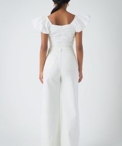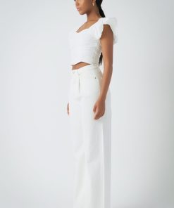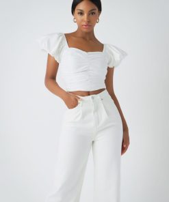 Endless Rose Women’s Shirring Detail Puff Sleeve Cropped Top | White