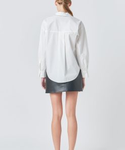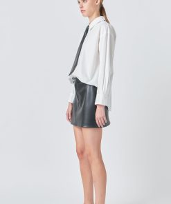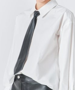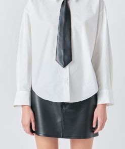 Endless Rose Women’s Shirt With Faux Leather Necktie | White