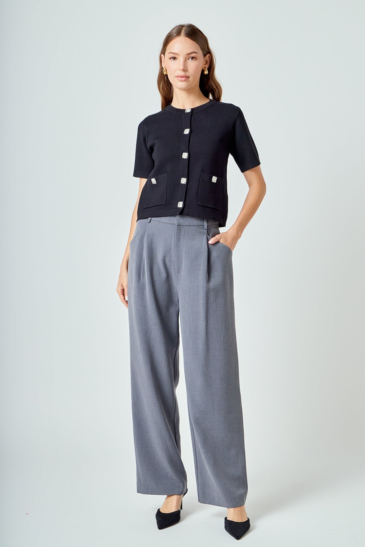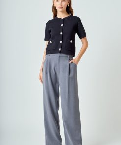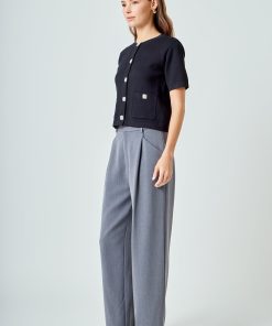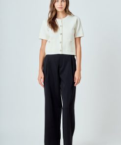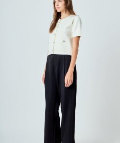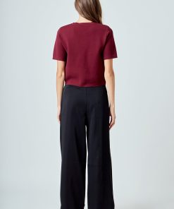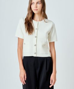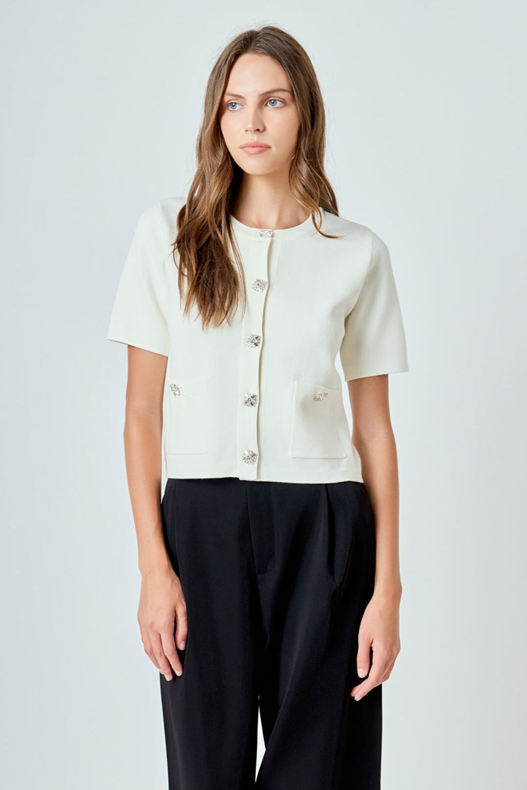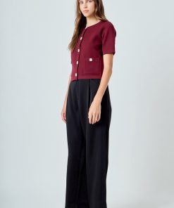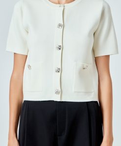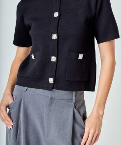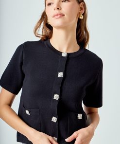 Endless Rose Women’s Short Sleeve Jewel Button-up Cardigan | Maroon|cream|black