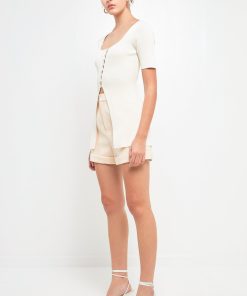 This Short Sleeve Long Knit Button Up is the perfect cardigan for layering. It’s fitted to show off your shape, while the long length and scooped neckline keep you covered. The short sleeves are perfect for transitioning from season to season. And the buttons add a touch of girly charm.