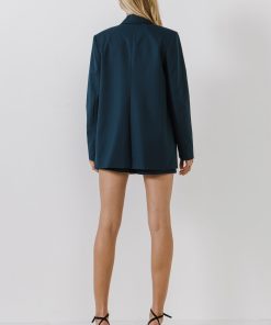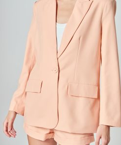 A must-have wardrobe staple for the season. From the office to the weekend, this single-breasted blazer is perfect for any occasion. The matching shorts are a chic addition to this look. The clean lines and tailored details of this blazer will keep you looking professional all day long