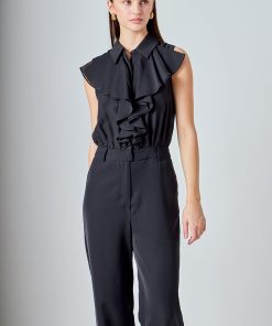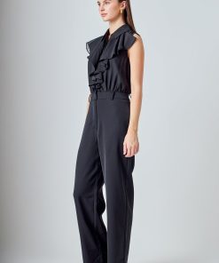 Endless Rose Women’s Sleeveless Ruffle Jumpsuit | Black