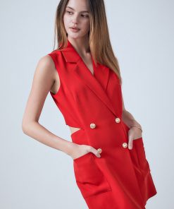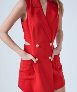 Make a statement with our Sleeveless Suit Romper, the perfect addition to your summer wardrobe. This mini length romper features front buttons for added style and a sleeveless design to keep you cool on hot days. The lining ensures a comfortable fit, while the suit-inspired design adds a chic touch. Whether you’re headed to the beach or a night out on the town, this romper is versatile and effortlessly stylish. Elevate your look with our Sleeveless Suit Romper. Ideal for any occasion, don’t miss out on this must-have item!