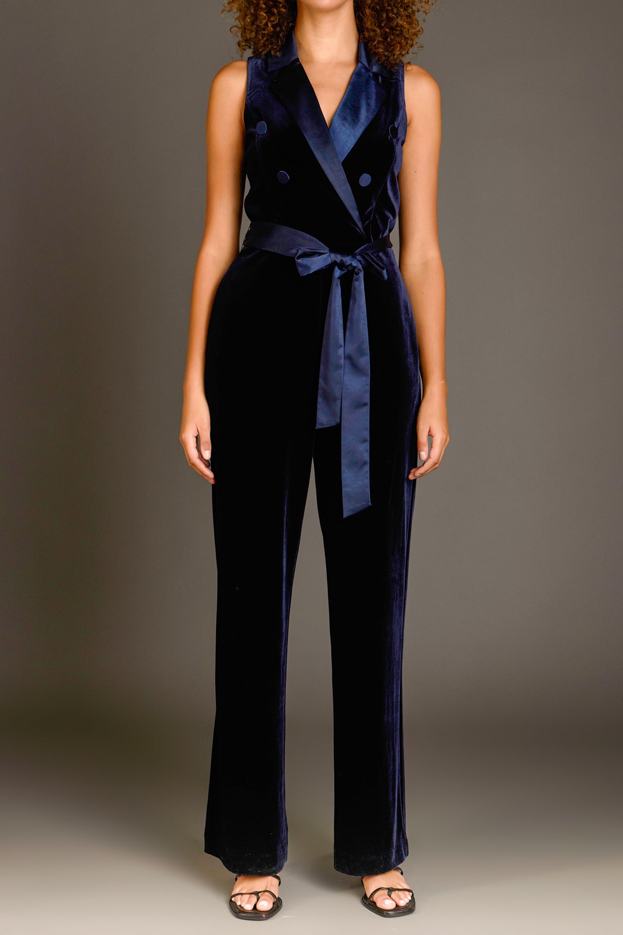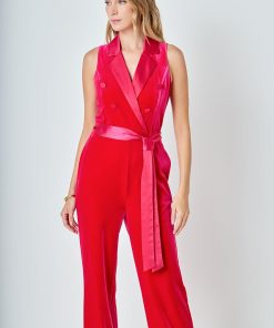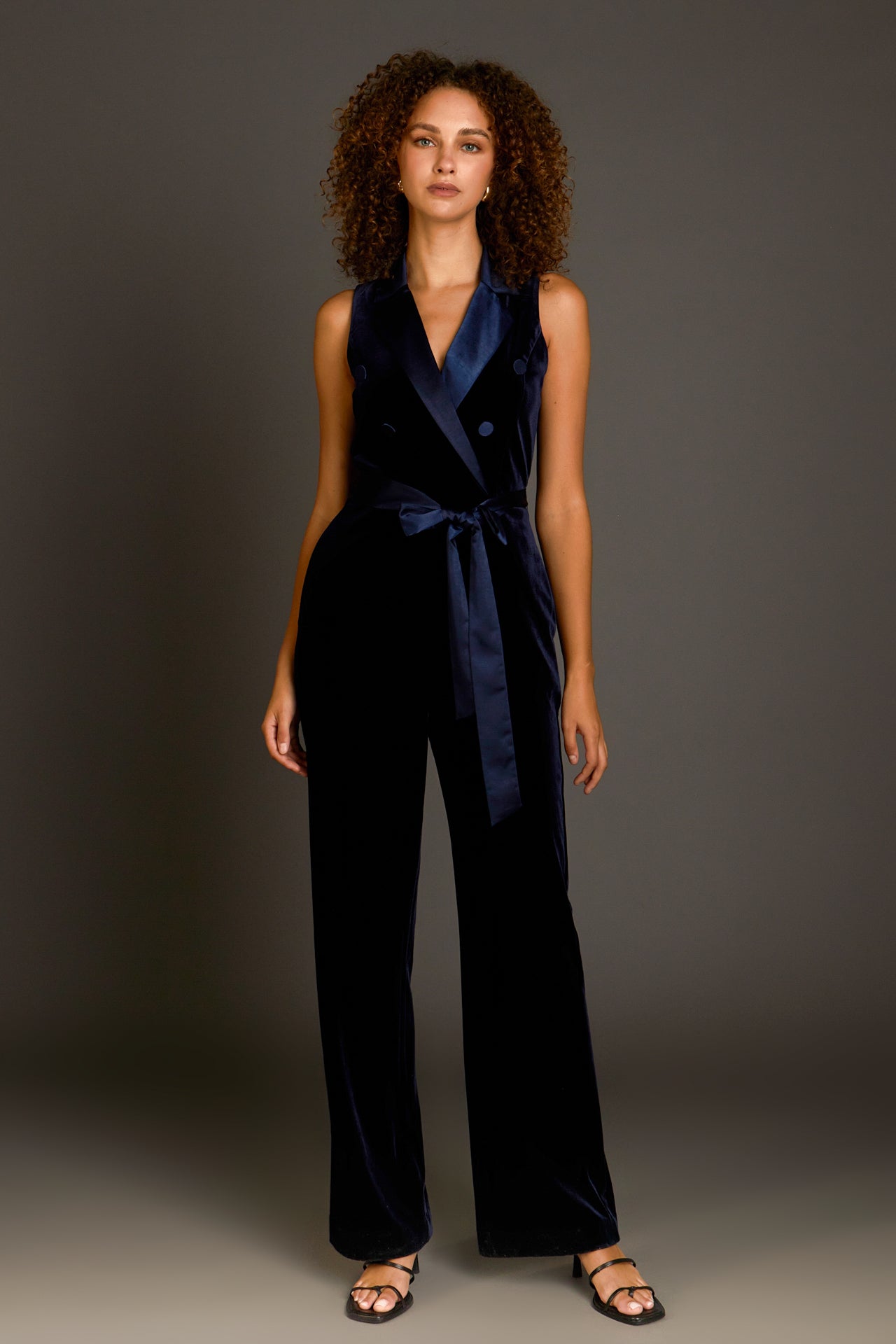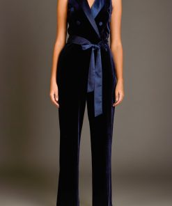 You deserve the elegance of a wrap jumpsuit this season. This satin lapel collar wrap jumpsuit is a guaranteed way to up your style game. With a self-belt and wide legs, this number is sleek and timeless. Step out in confidence knowing you look effortlessly chic in our Satin Collar Velvet Jumpsuit.