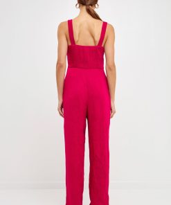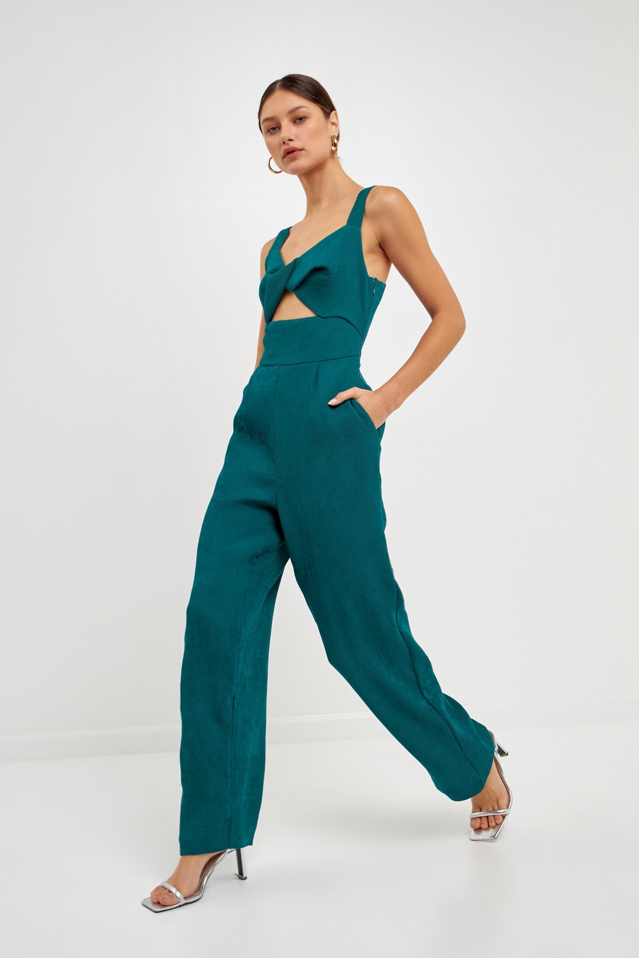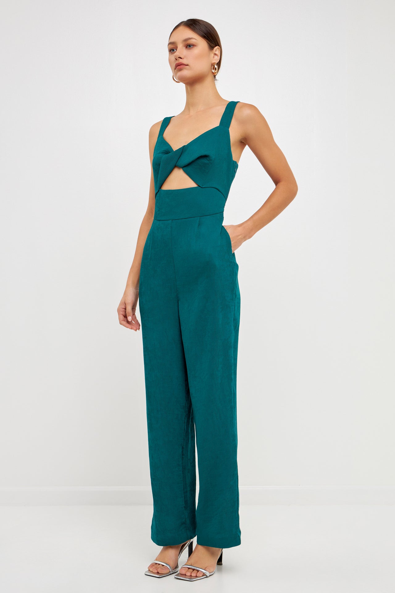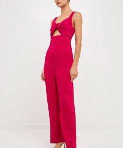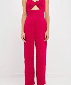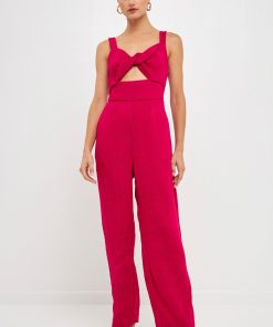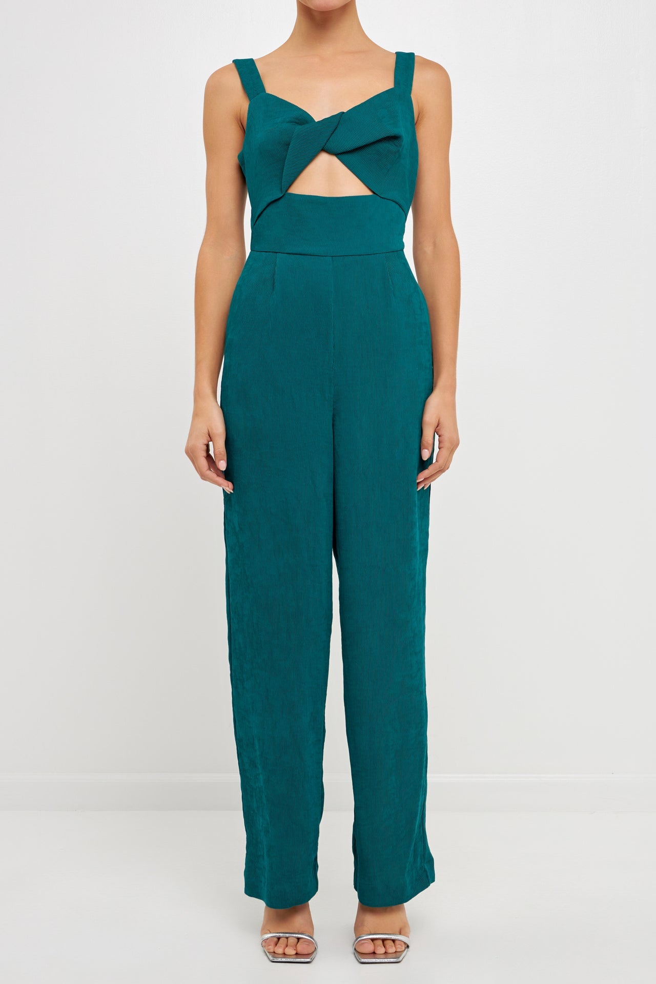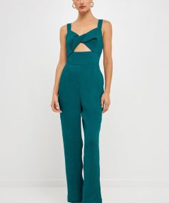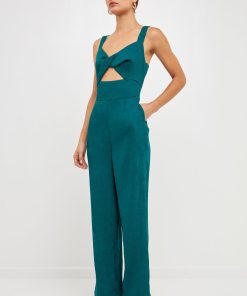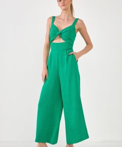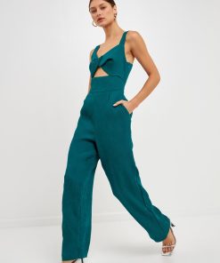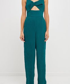 Endless Rose Women’s Soft Touch Plisse Twist Jumpsuit | Green|emerald|violet|black|purple