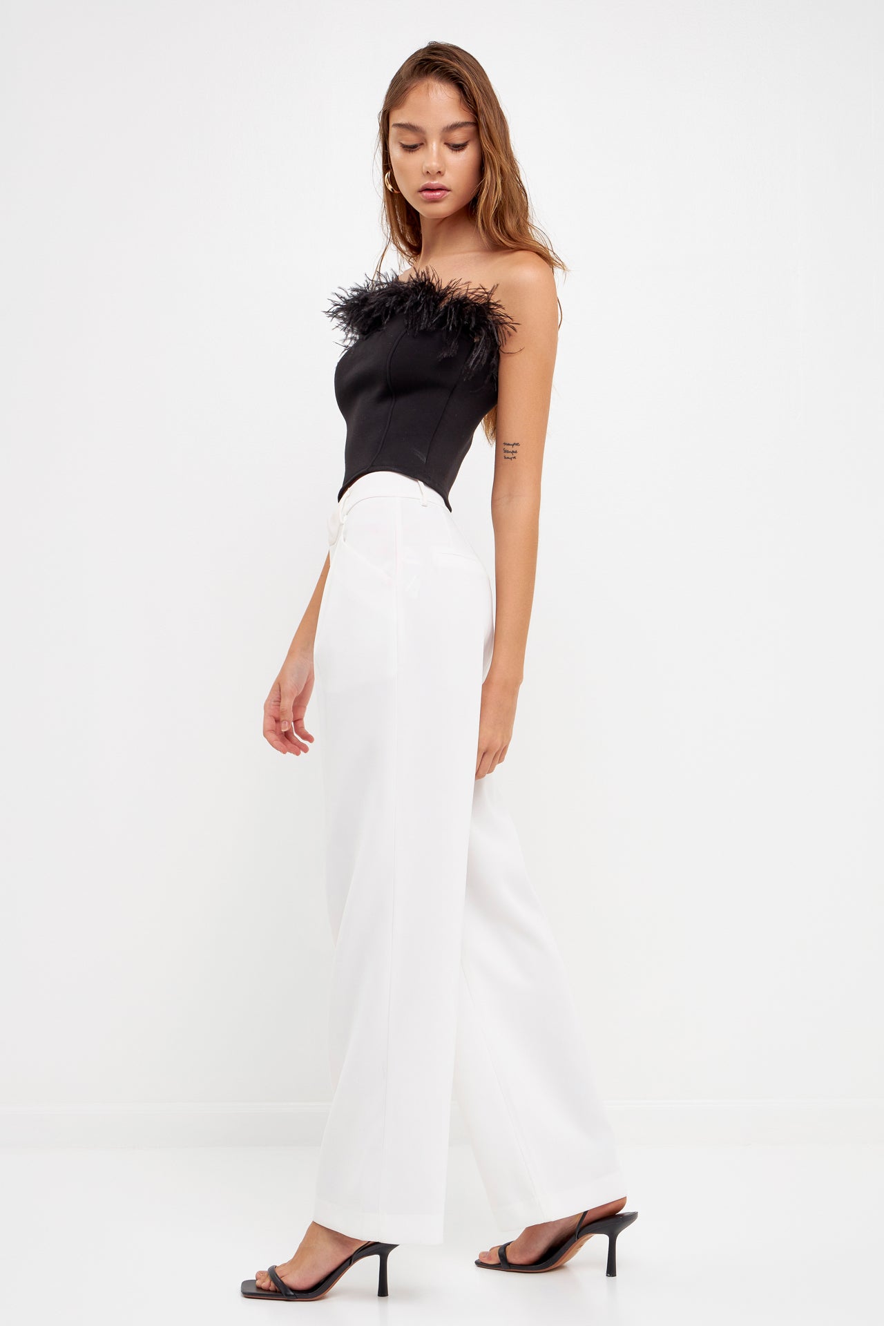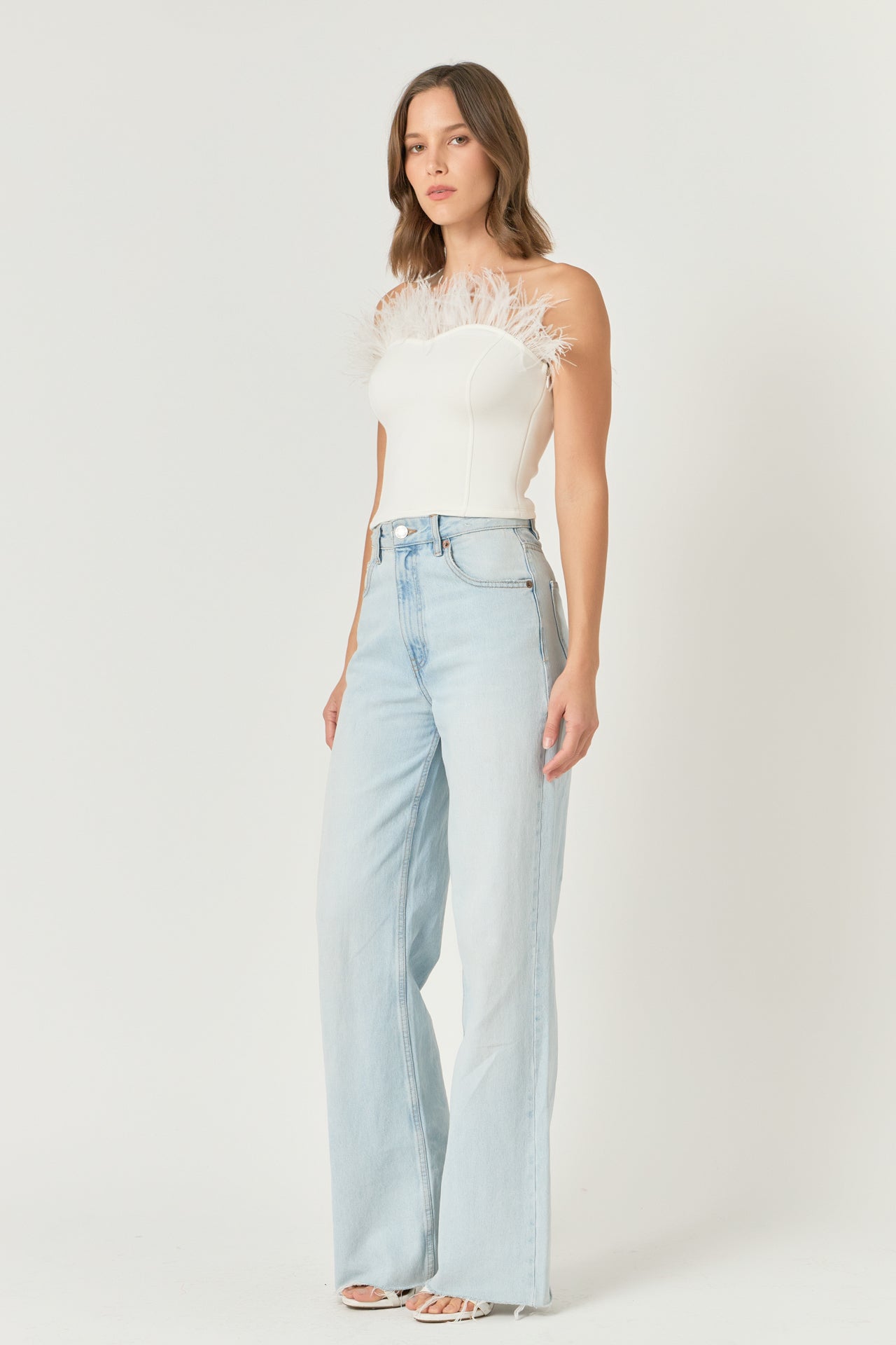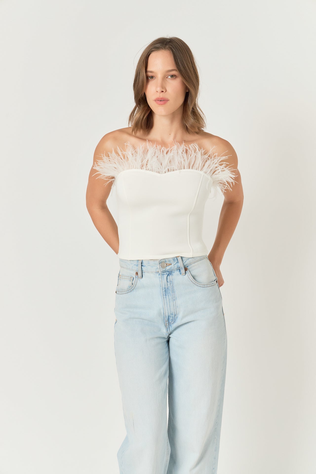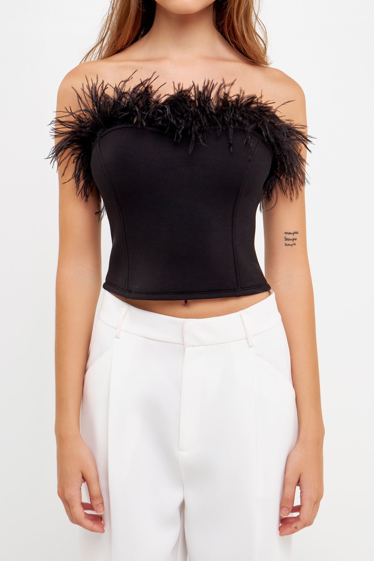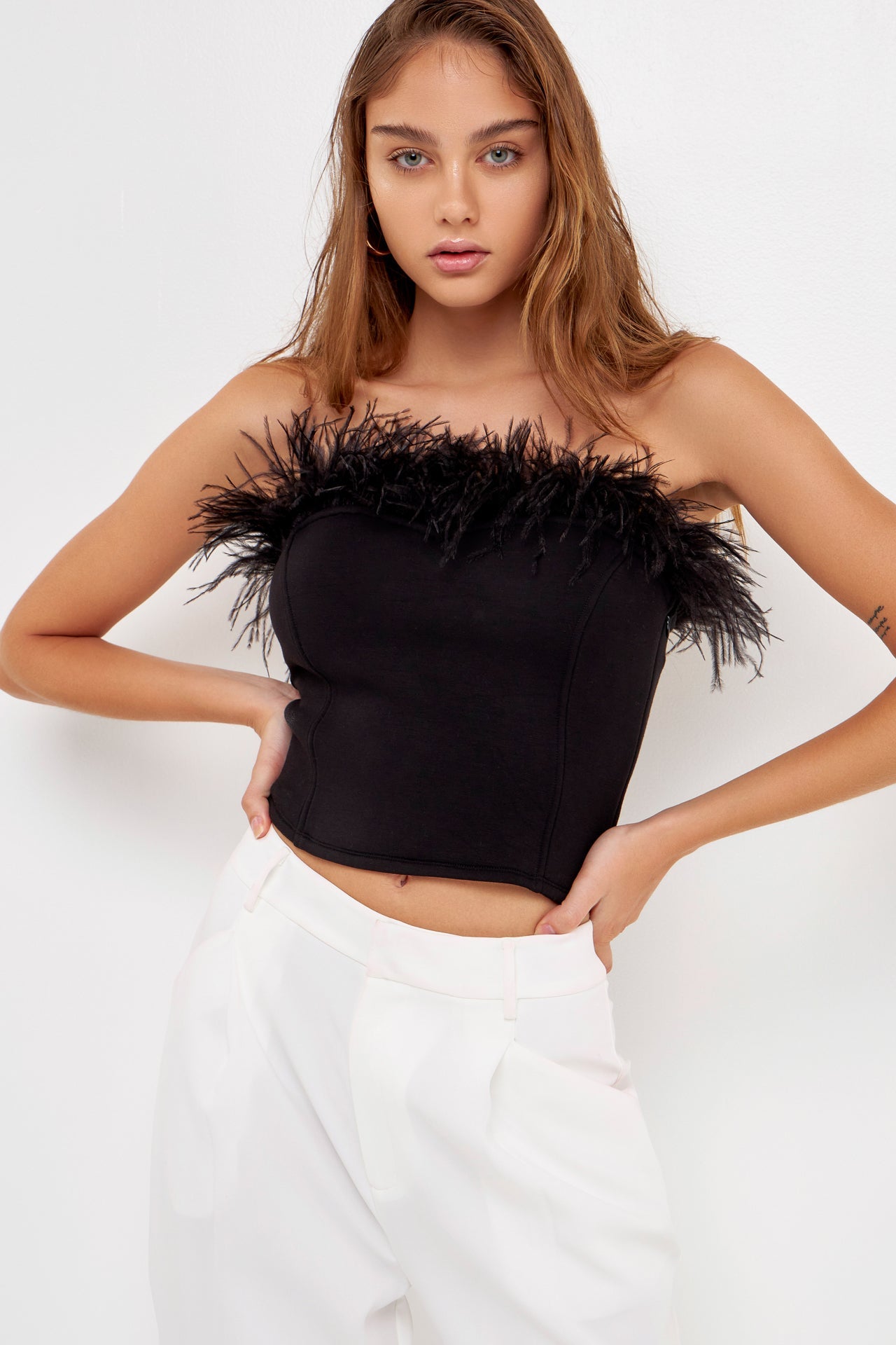 - Feather trimmed