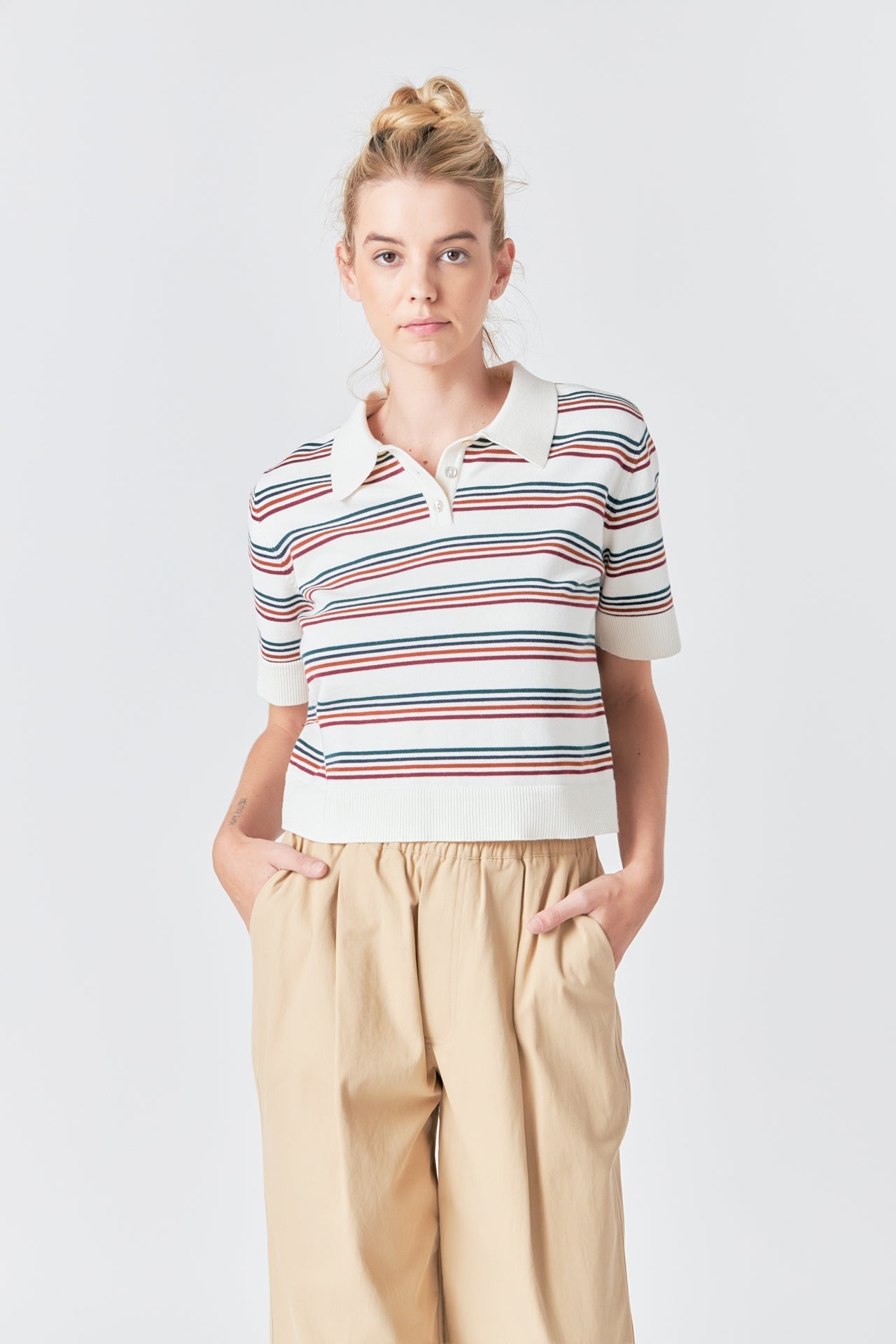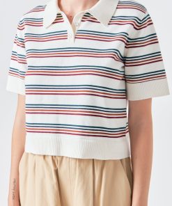 Step up your casual game with our Striped Polo Knit Shirt. Constructed with a boxy fit for added comfort, this collared shirt is perfect for any occasion. Its ribbed design adds texture and dimension, while the short sleeves keep you cool and stylish all day long. Made with high-quality materials, this shirt is built to last. The classic striped pattern adds a touch of sophistication to your wardrobe. Upgrade your style with our Striped Polo Knit Shirt and make a statement. Shop now for the perfect combination of comfort, style, and durability.