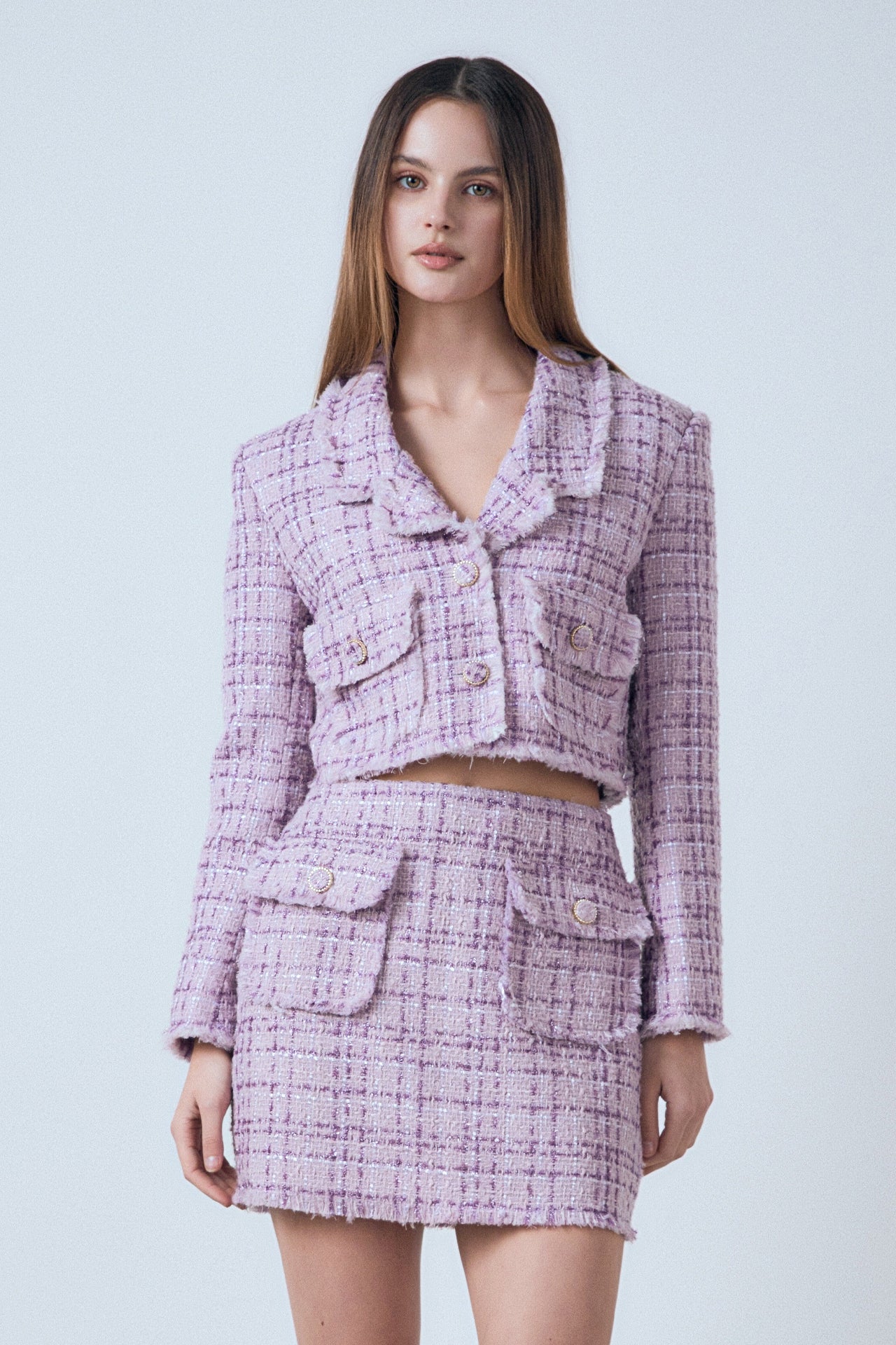 Introducing our Tonal Boucle Tweed Skirt, a timeless piece crafted from luxurious tweed fabric. The mini length and flap pocket detailing create the perfect silhouette finished with unique buttoned detail. Perfect for a work or weekend look this timeless classic is sure to add a touch of class and sophistication to any ensemble. Add to your wardrobe now for this season’s must-have item and make sure to be noticed.