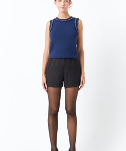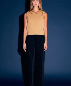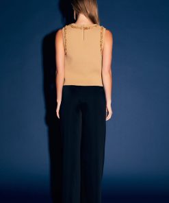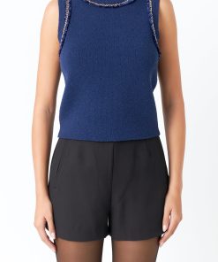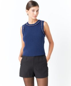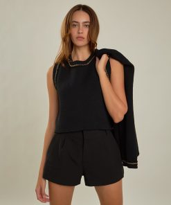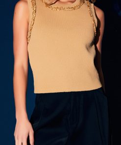 Add a touch of elegance to your wardrobe with this incredibly detailed tank top. The knitted pattern features narrow trim detailing and a round neckline that adds a subtle statement to any outfit. The eye-catching design is sure to get noticed while the loose-fitting look keeps your look modern and comfortable. Whether you’re heading out for drinks with friends or grabbing an evening stroll with someone special this trim detail knit tank top will be your go-to for effortless style.