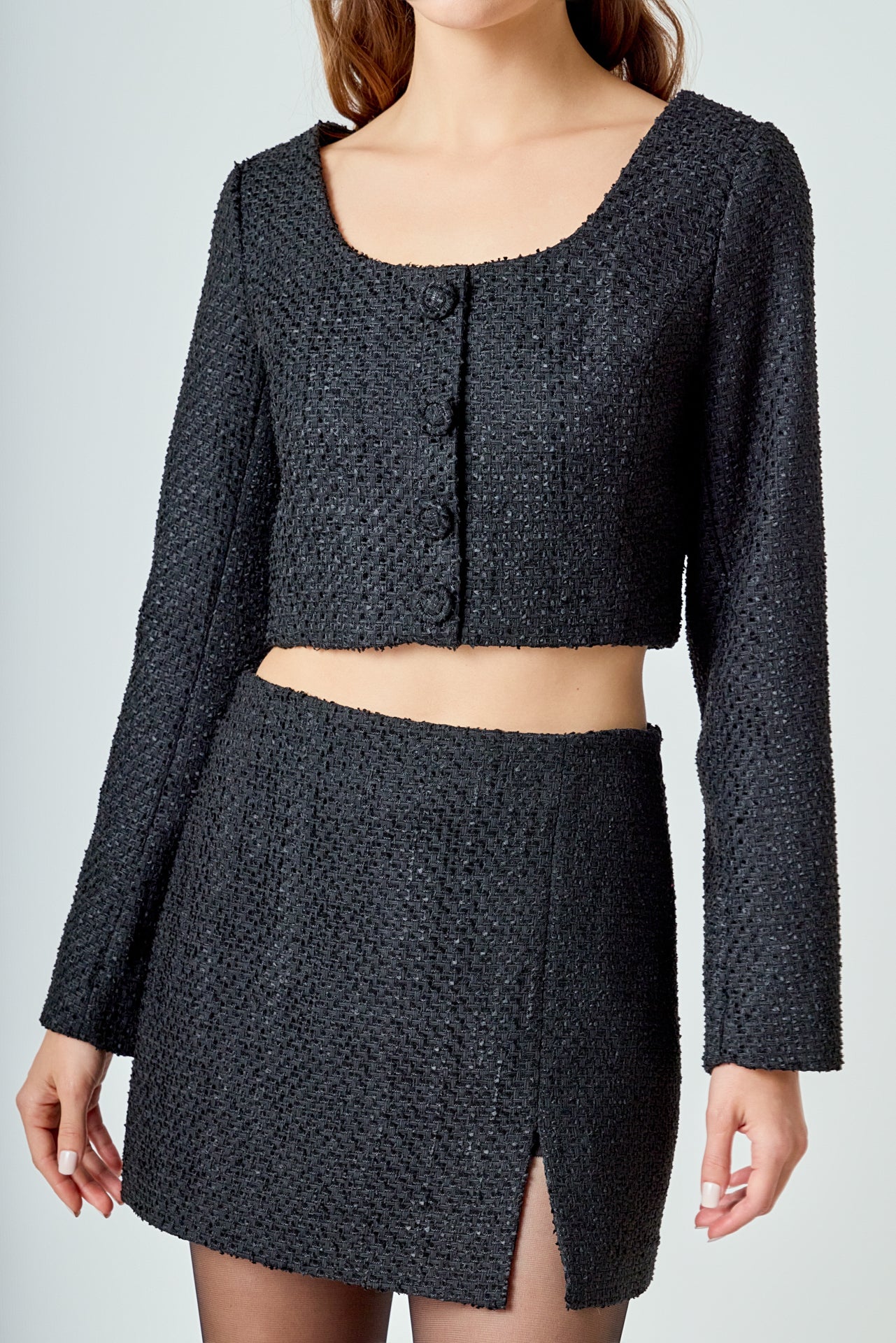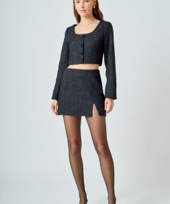 Elevate your wardrobe with our must-have Tweed Buttoned Top. Its timeless tweed fabric exudes elegance and sophistication, perfect for any occasion. A flattering scoop neck and shoulder pads effortlessly enhance your silhouette, while the button detail adds a touch of refinement. Versatile and stylish, this top is a wardrobe essential. Perfect for both casual and formal looks, it’s a versatile piece that you can dress up or down. Upgrade your style game and stand out with our Tweed Buttoned Top. Shop now for the ultimate chic look.