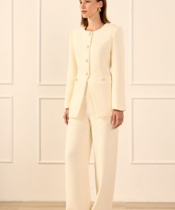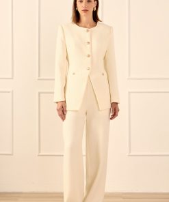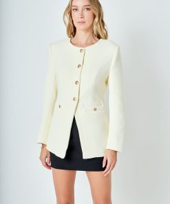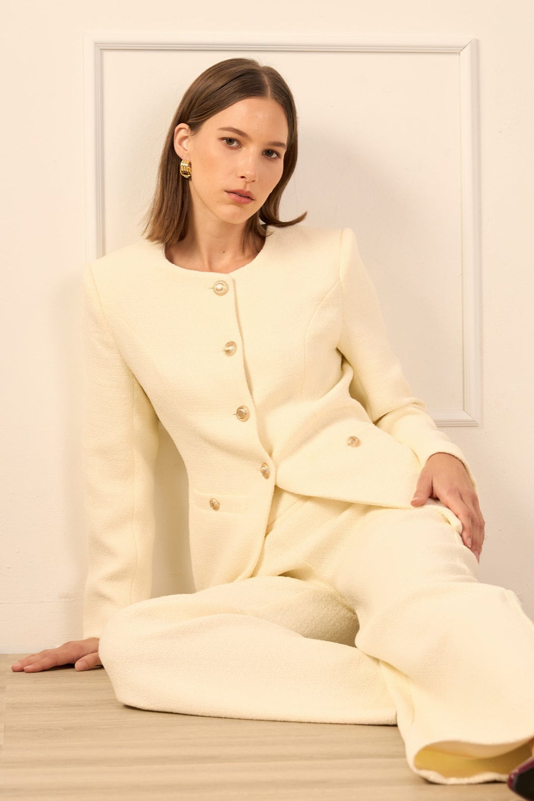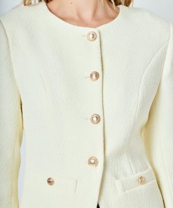 Stay warm and stylish with our Tweed Buttoned Vest. Made from luxurious tweed fabric, this vest exudes sophistication. The round neckline and long sleeves add to its classic appeal, while the shoulder pads elevate your look. Perfect for layering over a blouse or dress, this vest is the perfect addition to your fall and winter wardrobe. With its elegant design and high-quality material, this vest is sure to become your go-to piece for any occasion. Upgrade your outerwear game with our Tweed Buttoned Vest.