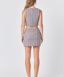 This chic mini tweed skirt is perfect for everyday wear! Crafted from grid tweed fabric with a fitted silhouette it features a unique front pocket with button detail for added style. The perfect combination of fashion and function the mini length makes it versatile and easy to style. Enjoy the sophisticated look of this skirt – head turning style and comfort you’ll love!