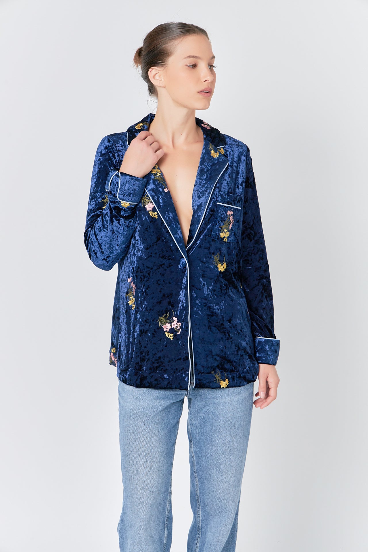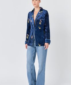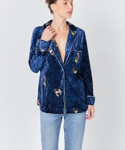 Endless Rose Women’s Velvet Pajama Jacket | Navy