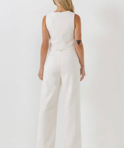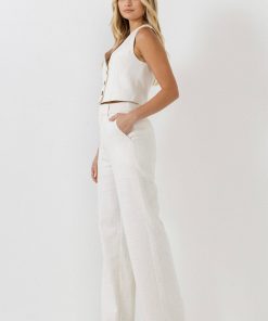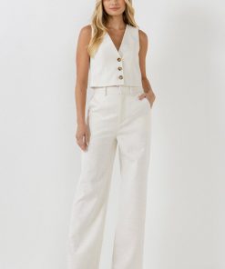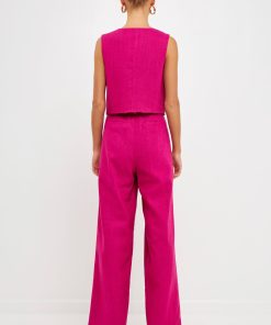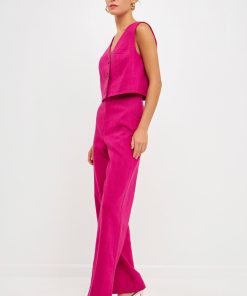 These high-waisted linen pants have a wide-leg silhouette and pockets. They have a hidden zip fly and hook-and-bar closure for a secure fit.