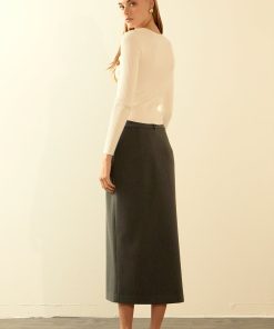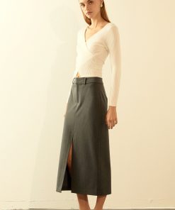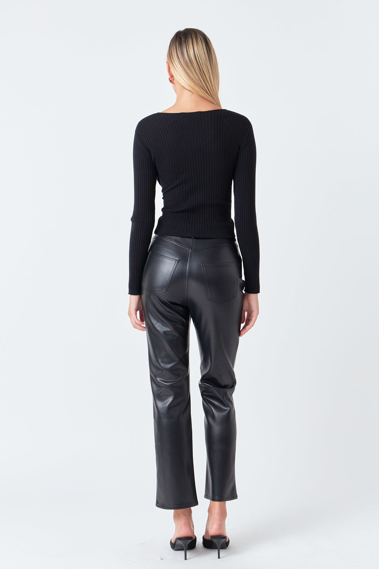 The perfect top to throw on without a second thought. The neckline is detailed with a double row of wrapped knit. This sweater is so easy to style and the fitted look will make you look amazing.