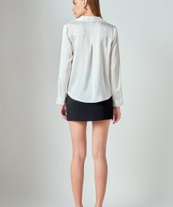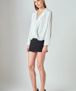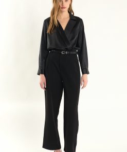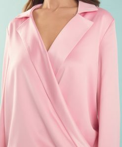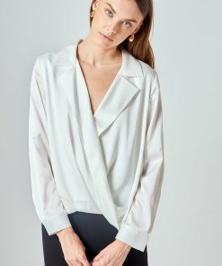 Introducing our Wrapped Satin Blouse a timeless piece for any wardrobe. With a V-neckline wrapped detailing and long sleeves with cuffs it’s a perfect blend of comfort and style. It features a sophisticated collared neckline adding elegance to any look. This versatile blouse is perfect for day or night and can be dressed up or down. Crafted from lightweight satin it’s sure to become a go-to piece in any wardrobe. Discover your perfect style with the Wrapped Satin Blouse.